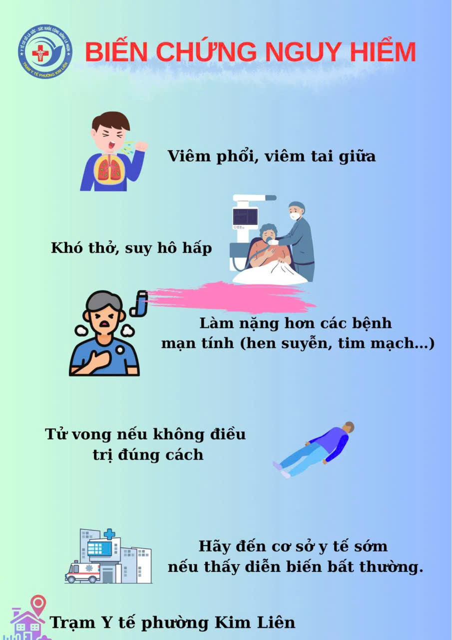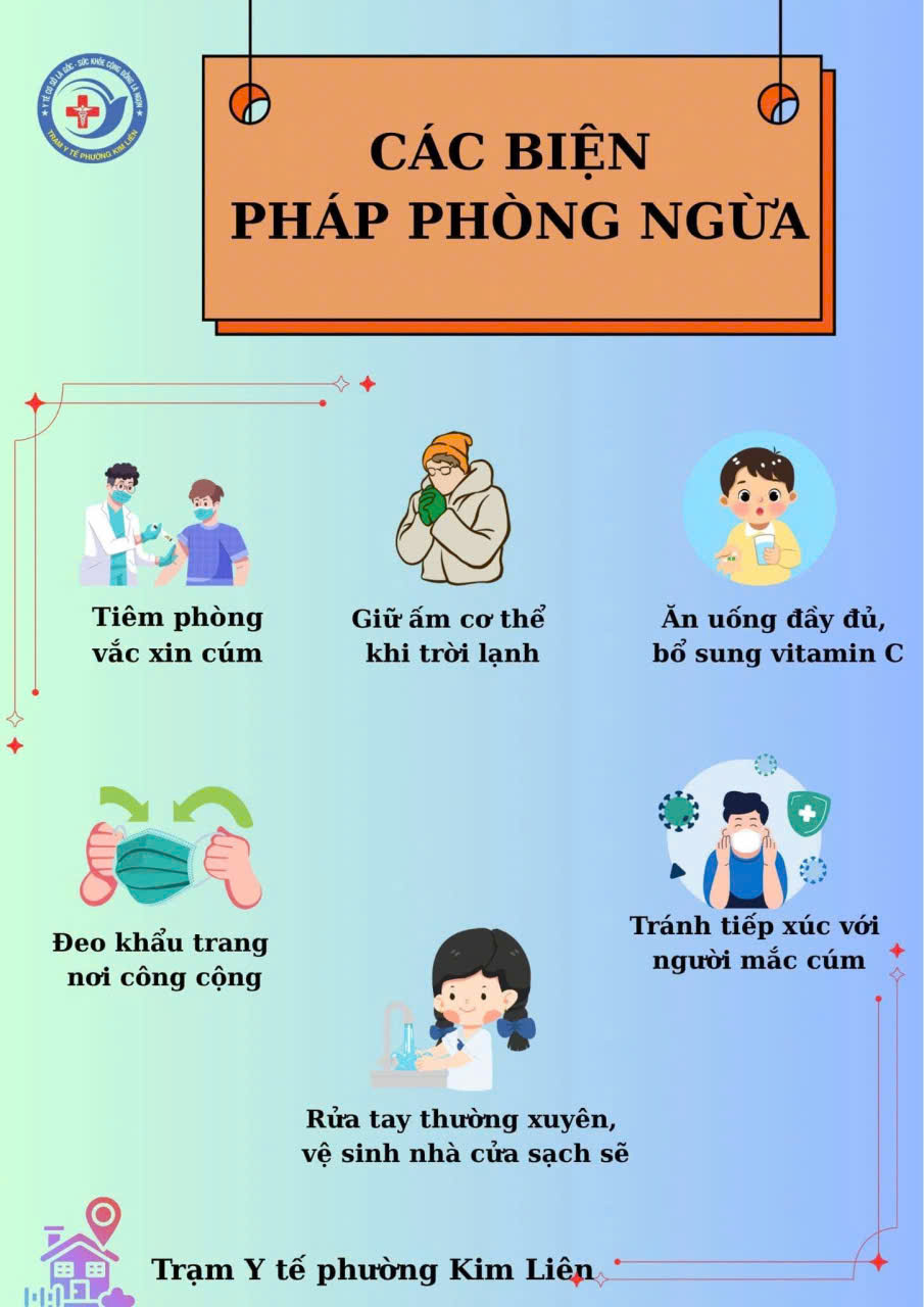 🌧️ TRẺ EM, PHHS & CBGVNV TRƯỜNG MẦM NON CAO DƯƠNG TỰ LƯU Ý THỜI TIẾT CHUYỂN MÙA – NGUY CƠ DỊCH CÚM TĂNG CAO 🌧️ Thời tiết giao mùa, nhiệt độ giảm, độ ẩm thấp là điều kiện thuận lợi cho virus cúm phát triển. 👉 Hằng năm, trên thế giới có tới 650.000 ca tử vong do cúm, chủ yếu ở người cao tuổi và người có bệnh nền (theo WHO). 👉 Tại Việt Nam, năm 2024 đã ghi nhận gần 290.000 ca mắc cúm, nhiều ổ dịch tại các tỉnh miền Bắc và miền Trung. ⚠️ Cần lưu ý: Cúm không chỉ là bệnh đường hô hấp thông thường. Bệnh có thể gây biến chứng nguy hiểm như nhồi máu cơ tim, tai biến mạch máu não, đột quỵ – đặc biệt ở người cao tuổi, người có bệnh mạn tính. 💉 TIÊM VACCINE CÚM – BIỆN PHÁP PHÒNG NGỪA HIỆU QUẢ • Vaccine cúm giúp giảm nguy cơ mắc bệnh, biến chứng nặng, nhập viện và tử vong. • PHHS, nhất là người trên 60 tuổi và người có bệnh mạn tính, cần chủ động tiêm vaccine cúm hằng năm theo khuyến cáo của bác sĩ. ✅ KHUYẾN CÁO CỦA TRƯỜNG MẦM NON CAO DƯƠNG & TRẠM Y TẾ XA DÂN HÒA • Chủ động tiêm vaccine cúm hằng năm. • Giữ gìn vệ sinh cá nhân, che miệng khi ho, rửa tay thường xuyên. • Hạn chế đến nơi đông người khi có triệu chứng hô hấp. • Đến ngay trạm y tế hoặc cơ sở y tế khi có dấu hiệu nghi ngờ cúm để được tư vấn, chẩn đoán và điều trị kịp thời. 💙 Tiêm vaccine cúm – bảo vệ bản thân, gia đình và cộng đồng.