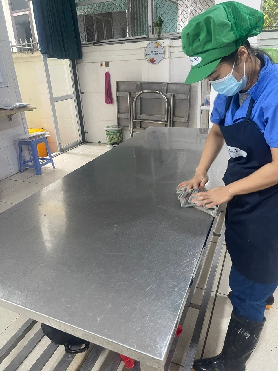 Trạm Y Tế Xã Dân Hòa thực hiện giám sát ATTP tại bếp ăn Trường Mầm Non Cao Dương.