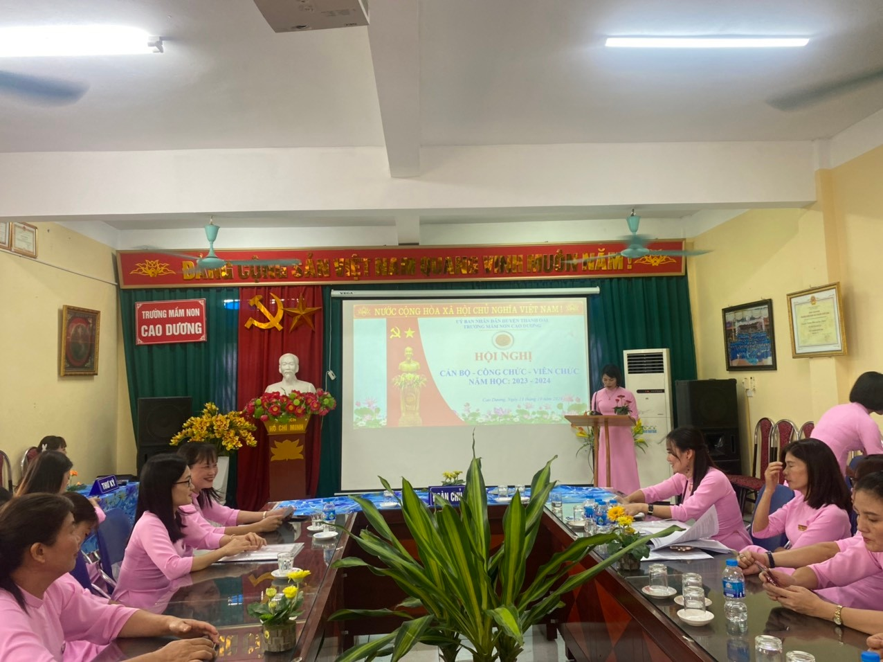 Sau một thời gian làm việc, với tinh thần đoàn kết, phát huy dân chủ, trí tuệ và trách nhiệm cao của các cán bộ, giáo viên, nhân viên, Hội nghị Cán bộ - công chức - viên chức trường Mầm non Cao Dương năm học 2023-2024 đã thành công tốt đẹp. Trên chặng đường phía trước, tập thể nhà trường lại cùng nhau đoàn kết, cố gắng phấn đấu hết mình để đạt được những mục tiêu đề ra và xây dựng một ngôi trường mầm non “ Xanh – An toàn - Hạnh phúc”.