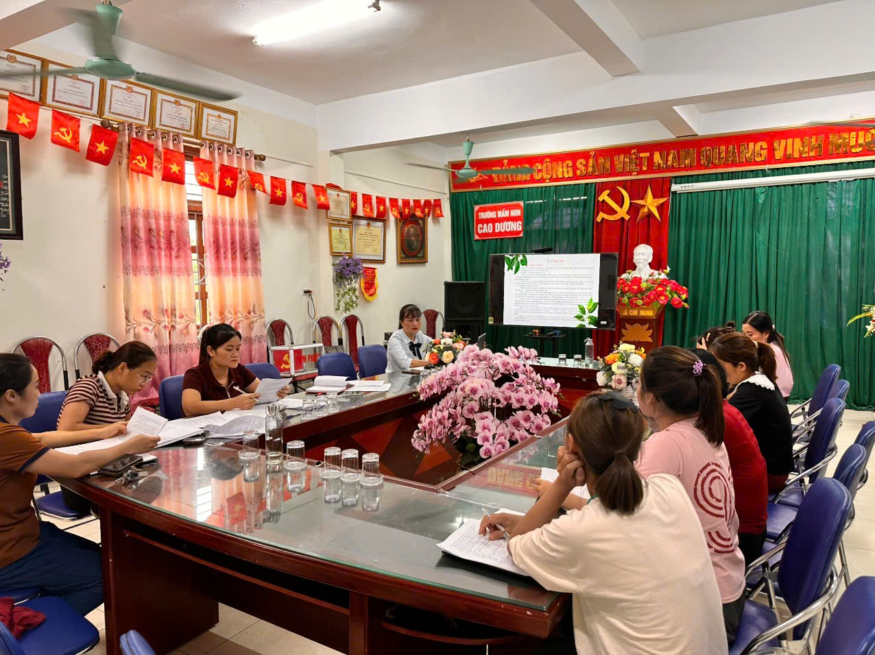 Ngày 28 tháng 08 năm 2025, Trường Mầm Non Cao Dương tổ chức buổi tập huấn "quy chế nuôi dưỡng" cho nhân viên nuôi dưỡng trường Mầm Non Cao Dương theo hướng dẫn của SGD và ĐT năm học 2025-2026.